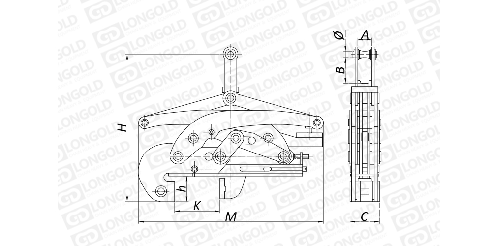 鉗臂移動采用機械杠桿式,依靠鋼卷自重夾持鋼卷并鎖緊。