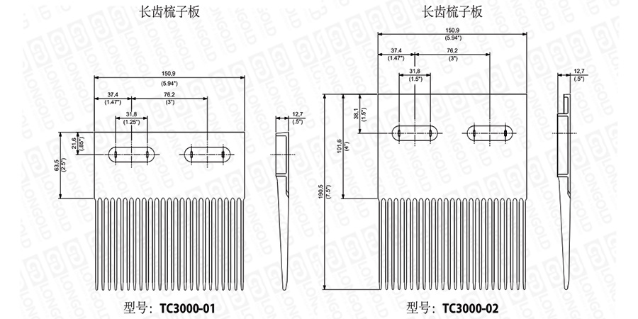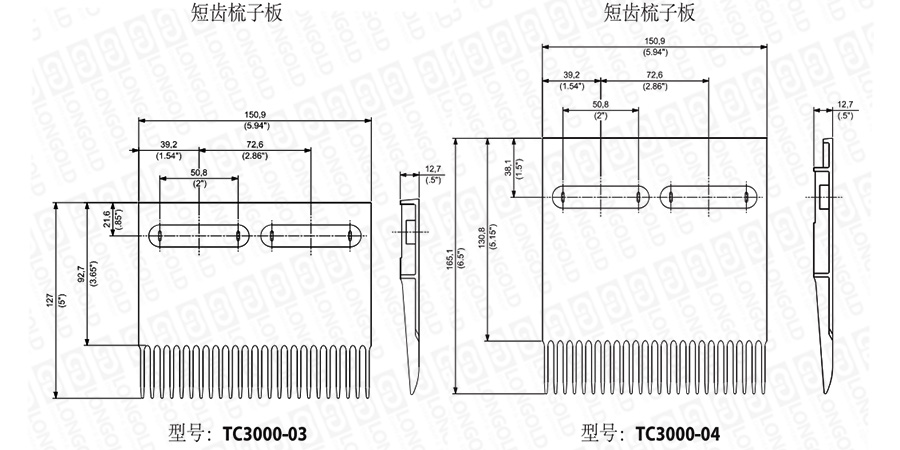 在選擇梳子板時,需要考慮安裝尺寸,如有需要,請咨詢隆德技術人員。