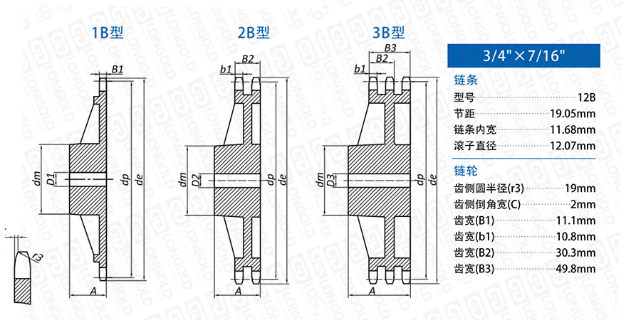 上圖為12B 鑄鐵鏈輪的結構圖。
